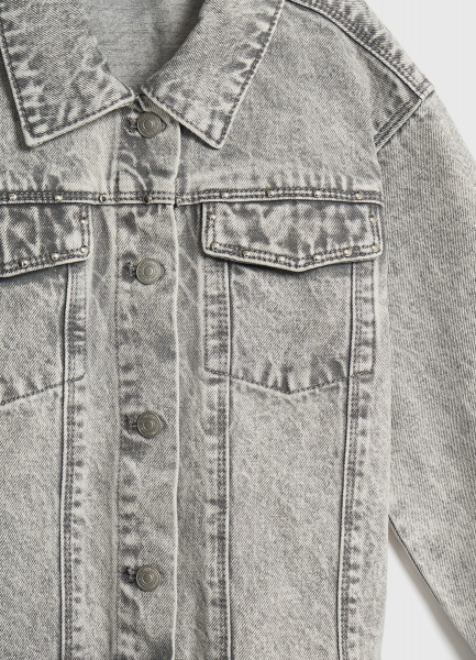 Джинсовая куртка с металлическим декором для девочек, Серый