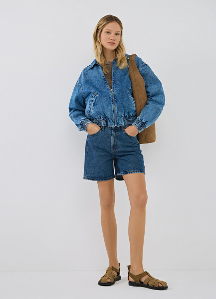 Джинсовые шорты-бермуды с высокой посадкой, Голубой