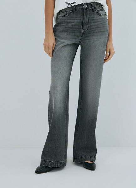 Расклёшенные джинсы с высокой посадкой, Голубой