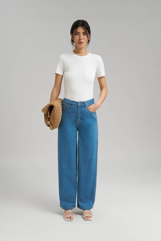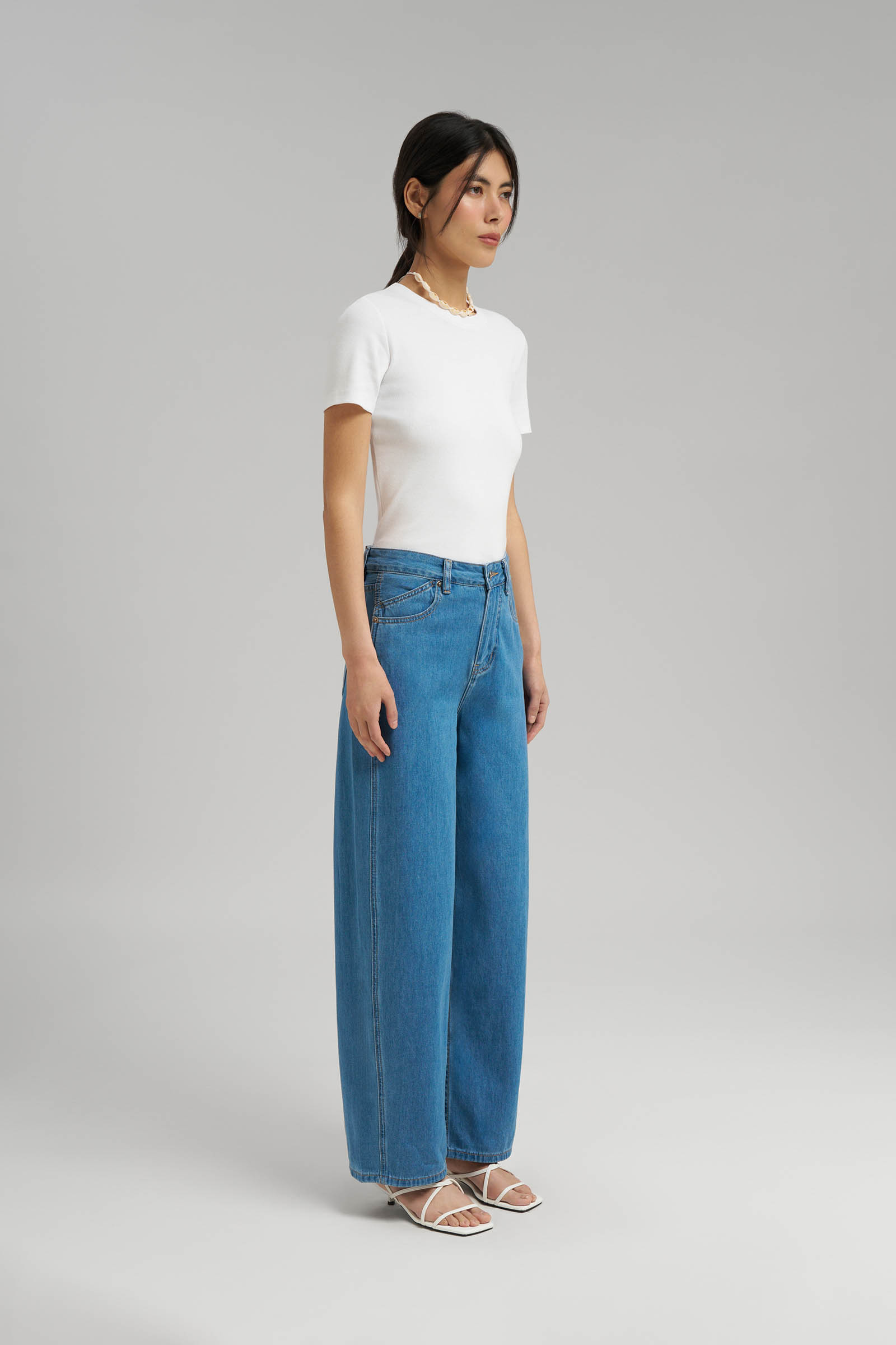 Джинсы полуприлегающего кроя с высокой посадкой
