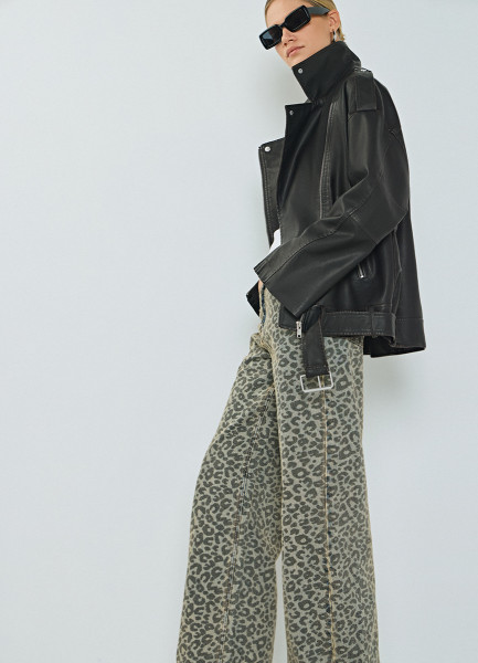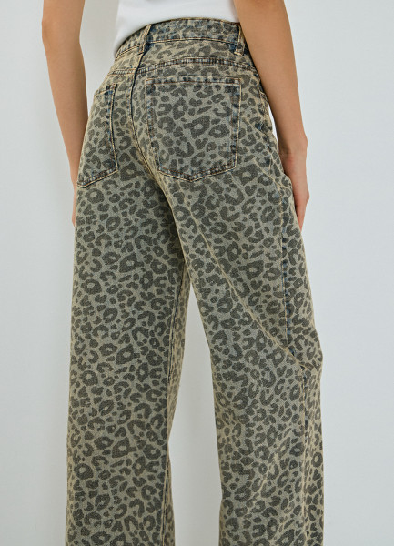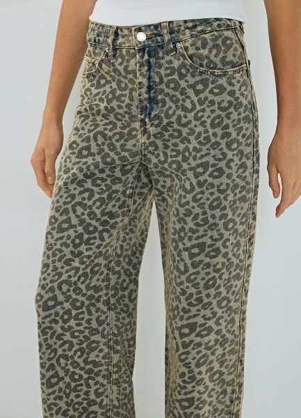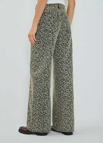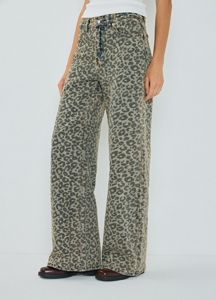 Широкие джинсы с леопардовым принтом, Синий