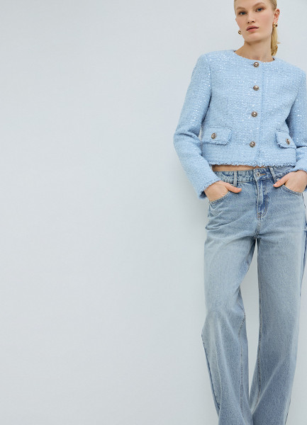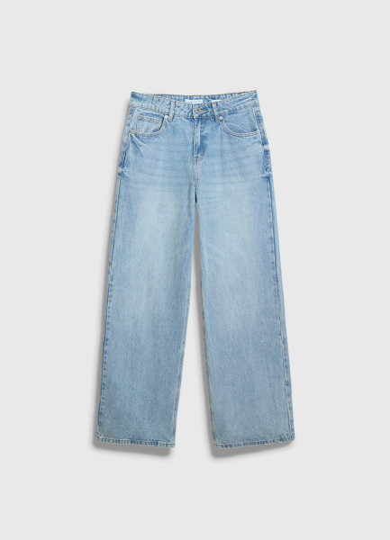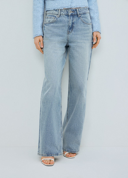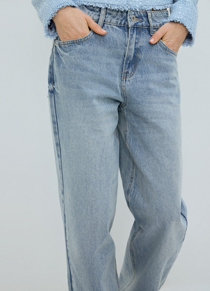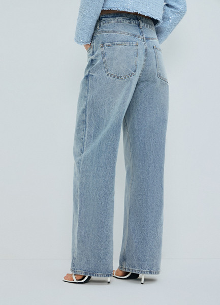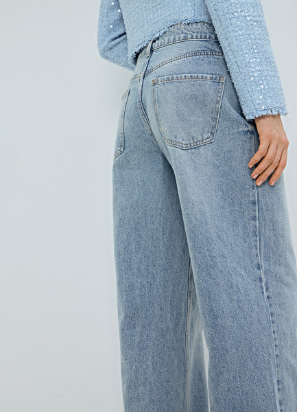 Широкие джинсы с высокой посадкой и отворотами, Синий