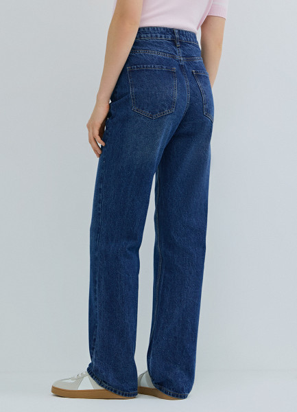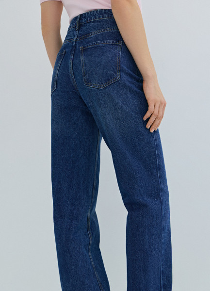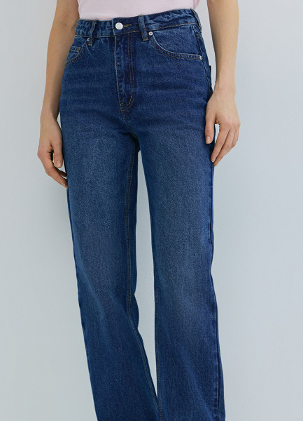 Прямые джинсы с высокой посадкой, Синий