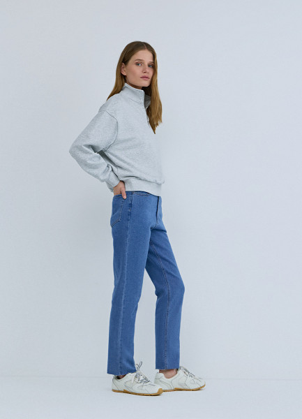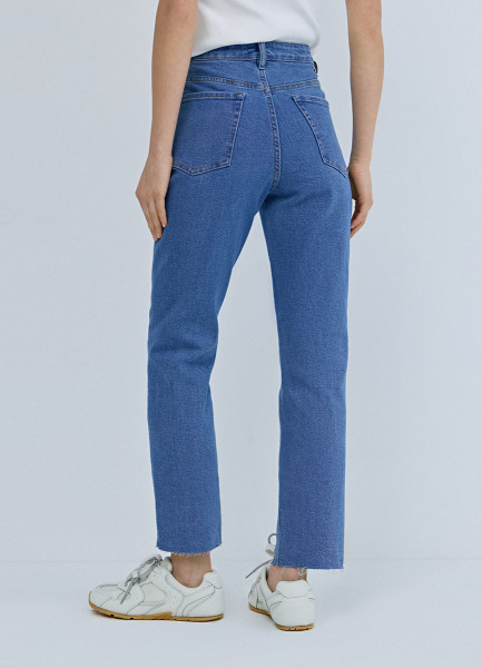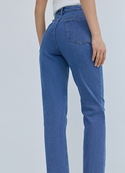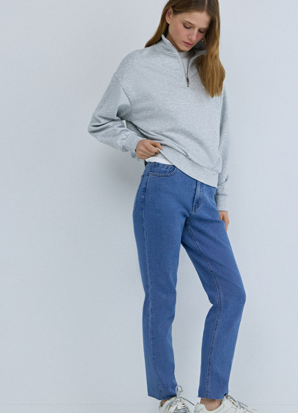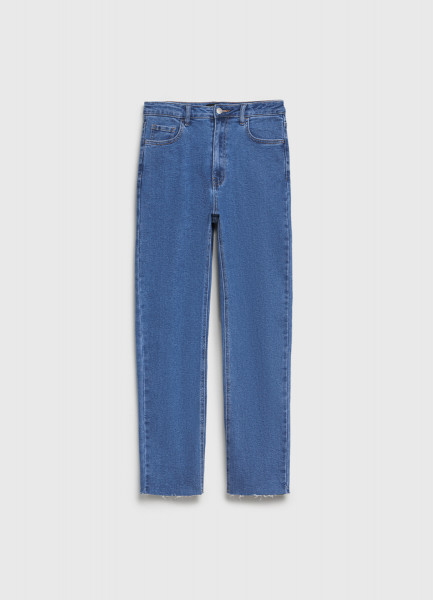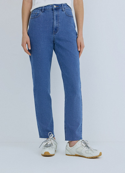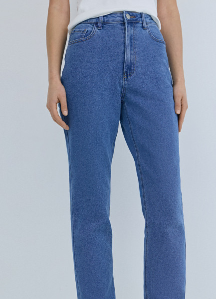 Широкие джинсы с высокой посадкой и отворотами, Синий