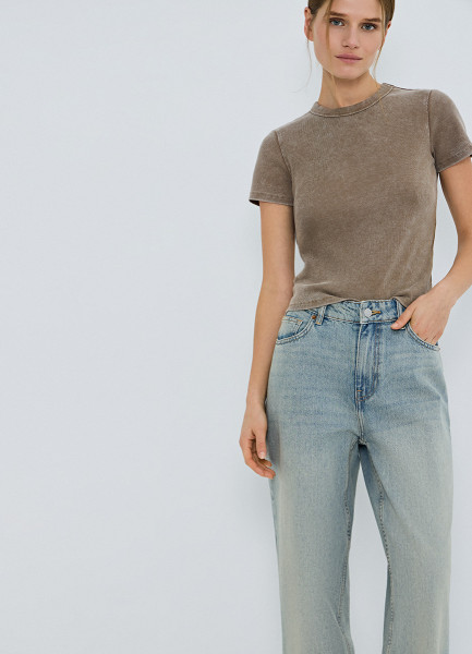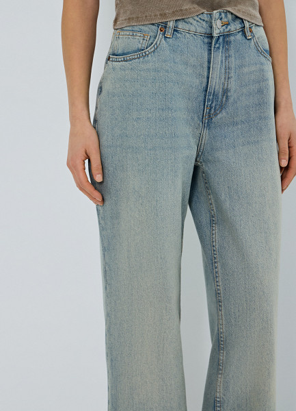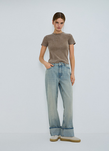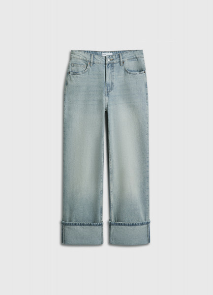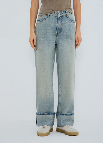 Широкие джинсы с высокой посадкой и отворотами, Синий