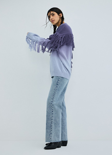Расклёшенные утеплённые джинсы, Синий