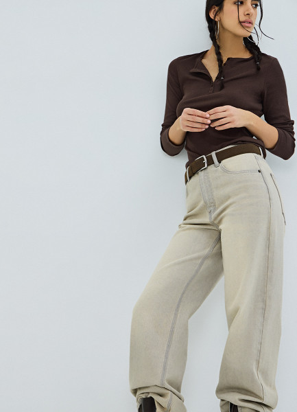 Прямые джинсы с высокой посадкой, Бежевый