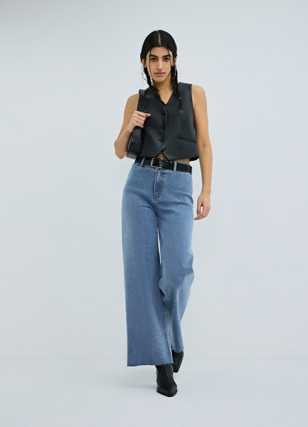 Широкие джинсы с высокой посадкой и отворотами, Синий