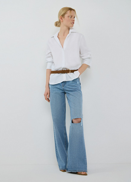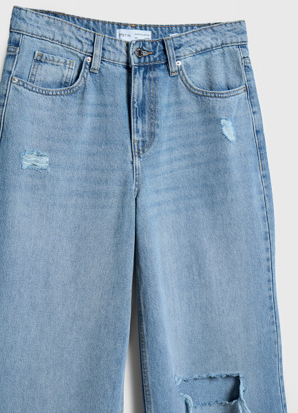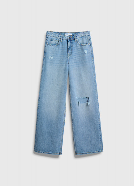 Широкие джинсы Wide leg с высокой посадкой, Синий