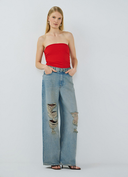 Прямые джинсы с высокой посадкой, Голубой