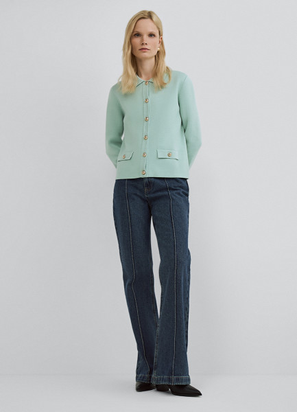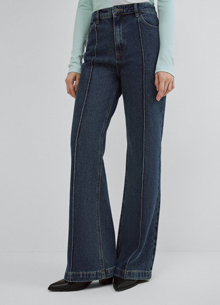 Джинсы клёш с высокой посадкой, Синий