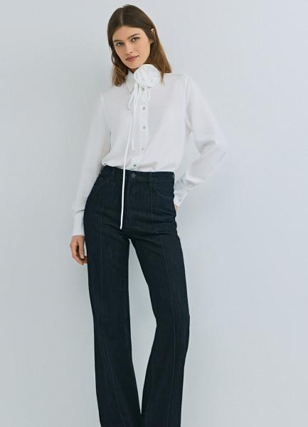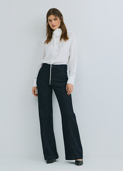 Джинсы клёш с высокой посадкой, Синий