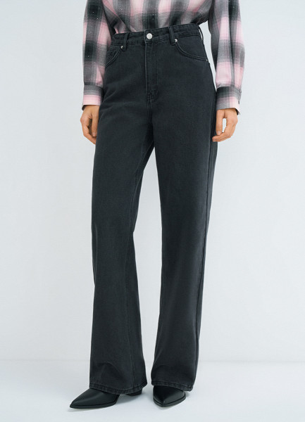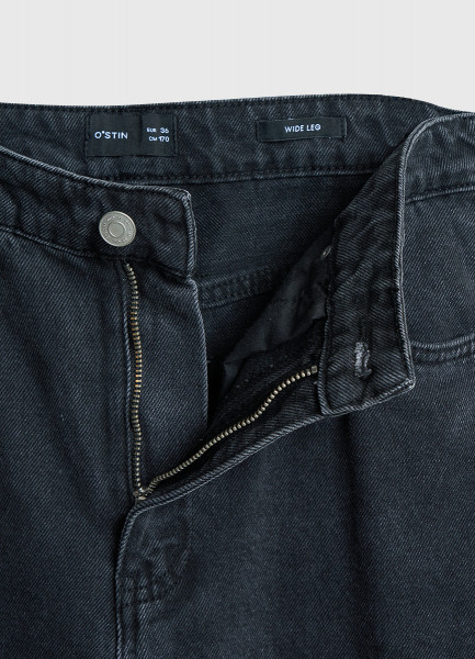 Широкие джинсы с высокой посадкой, Серый