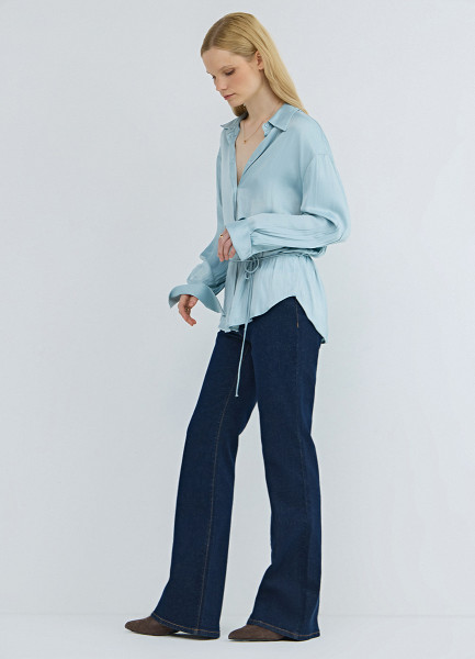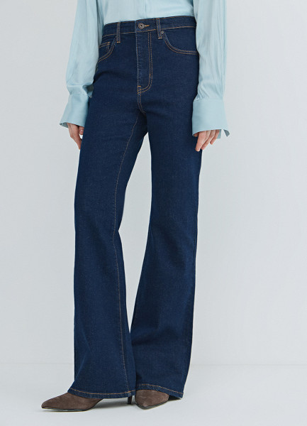 Расклёшенные утеплённые джинсы, Синий