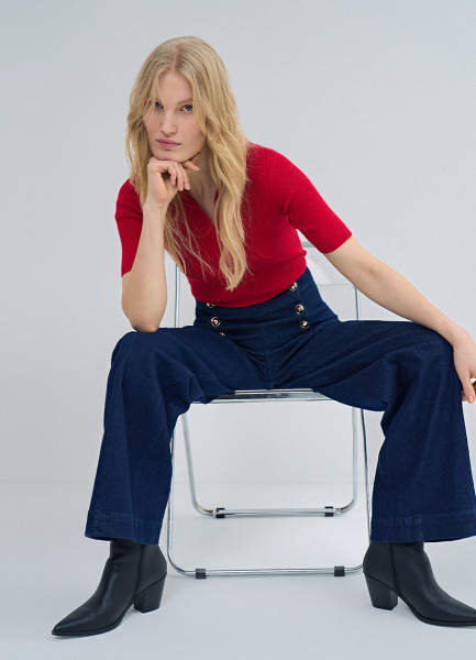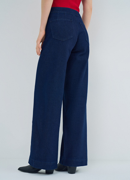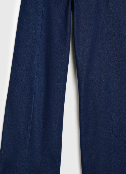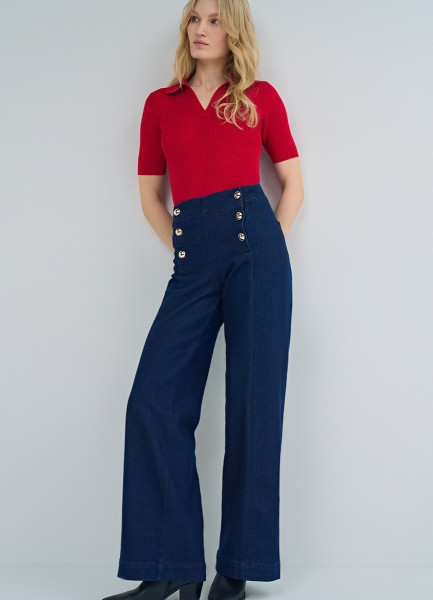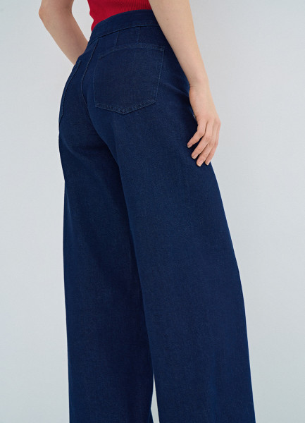 Широкие джинсы высокой посадки с декоративными пуговиицами, Синий