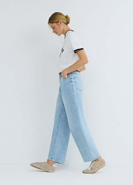 Ультраширокие джинсы со средней посадкой, Голубой
