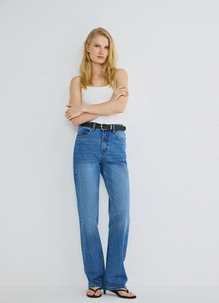 Прямые джинсы с поясом-цепочкой с жемчугом, Голубой