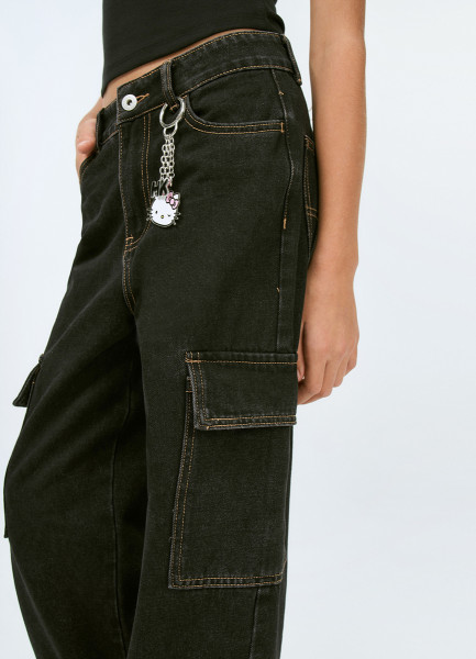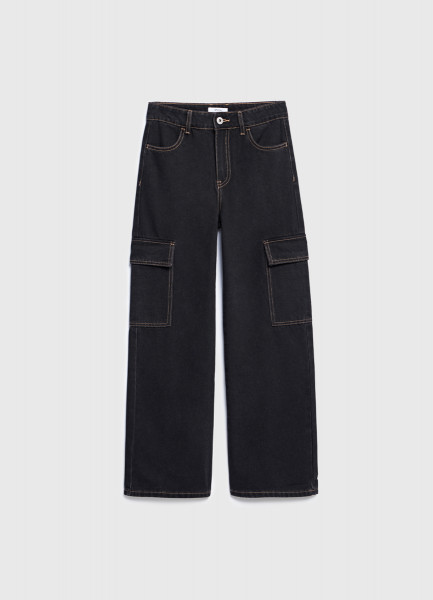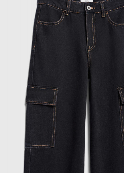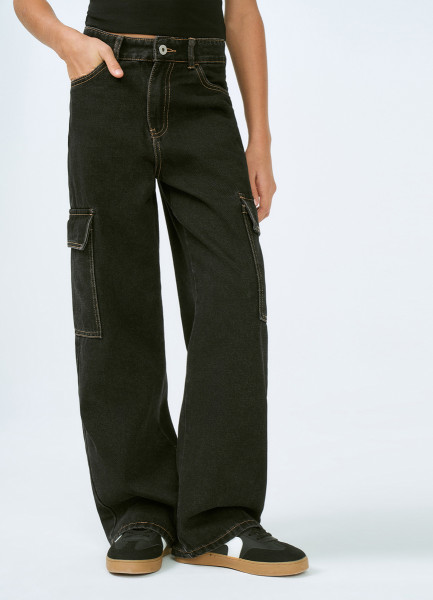 Джинсы с карго-карманами для девочек, Черный