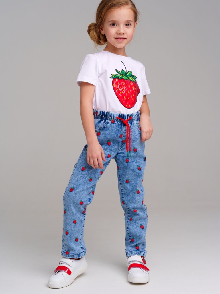 Джинсы для девочки. Эластичный пояс со шнурком. Comfort fit – свободный крой брючин. Накладные карманы с клапанами на боковых швах.