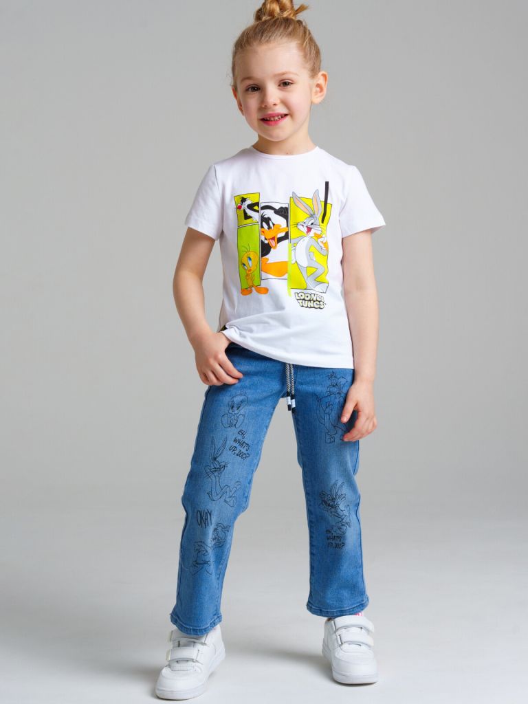 Брюки текстильные джинсовые для девочек