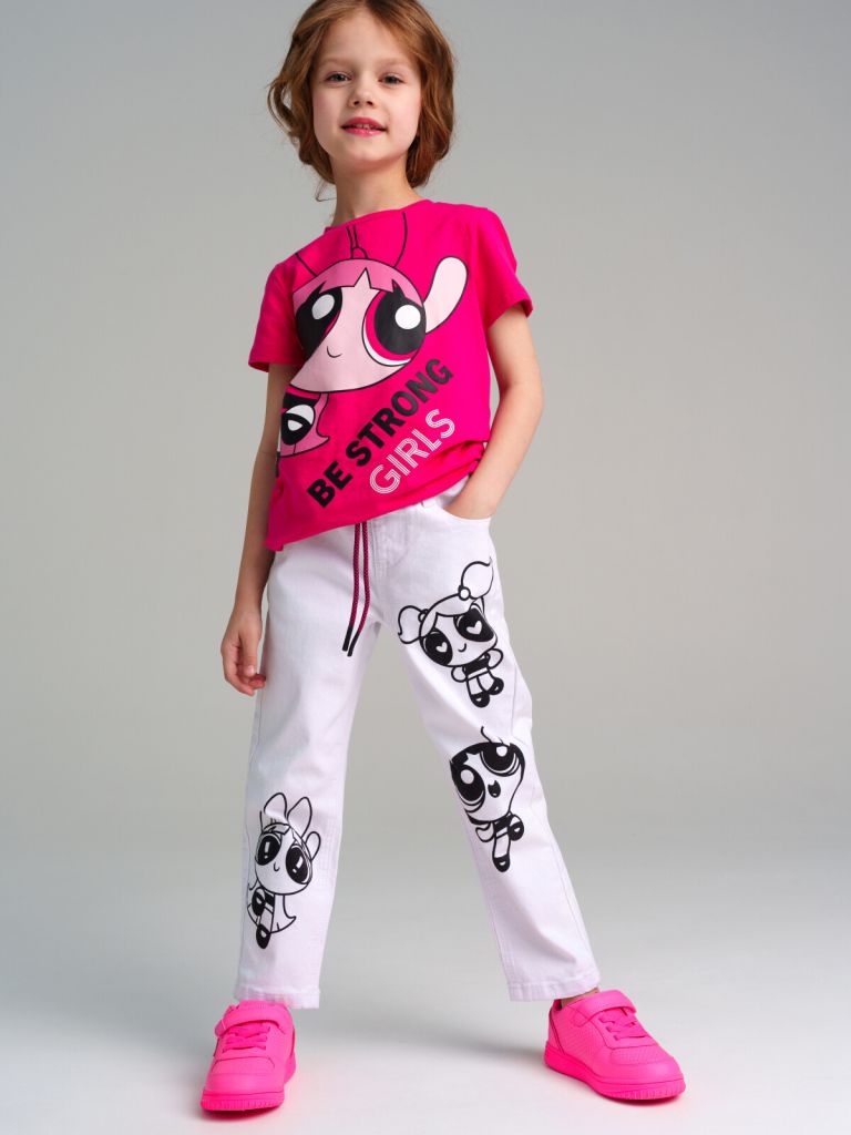 Джинсы для девочки. Эластичный пояс со шнурком. Comfort fit – свободный крой брючин. Высокая посадка. Функциональные карманы.