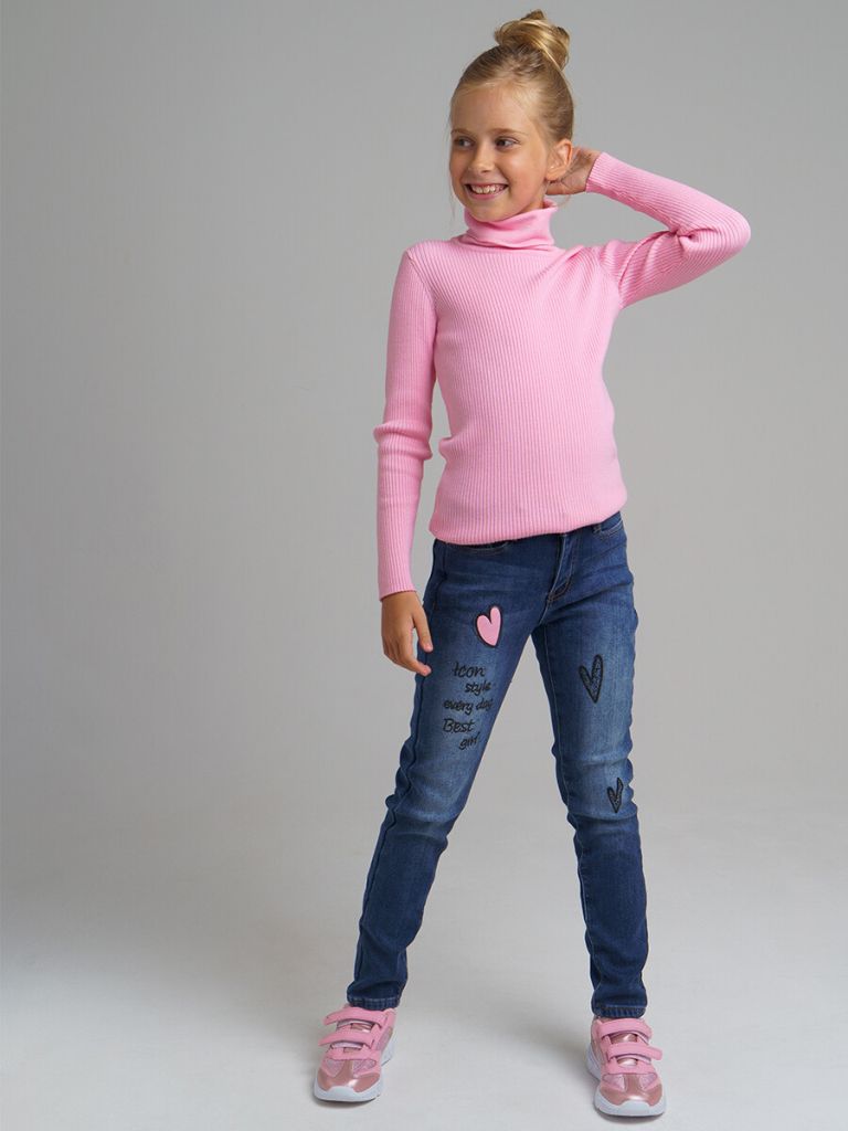 Джинсы, утепленные флисом, из качественного эластичного денима. Классический крой со слегка зауженным силуэтом от колена. Благодаря высокой посадке брюки не сползают при движении. Комфортная посадка за счет внутренней утяжки. Застежка на молнию и пуговицу. Функциональные карманы. Принт и стразы.