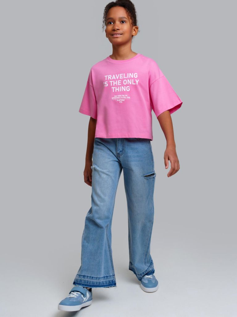 Джинсы для девочки подростка. WIDE LEG - свободная посадка и расклёшенные от бедра штанины. Высокая посадка.