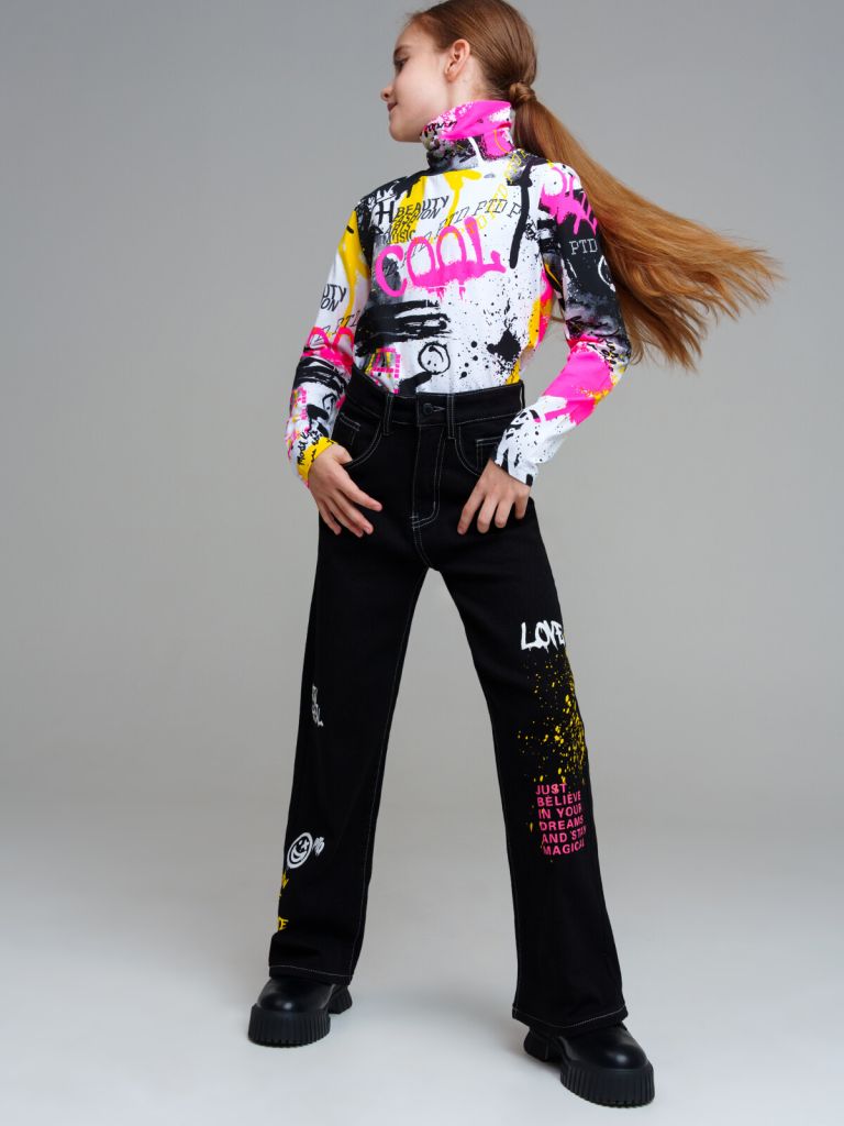 Джинсы с микроначесом для девочки подростка. Модные утепленные джинсы wide-leg. Застежка на молнию и болт. Внутренняя утяжка. Боковые карманы. Модель из капсульной коллекции DIGITAL TRANSFORM (ДИДЖИТАЛ ТРАНСФОРМ). Соберите полный образ в едином стиле!