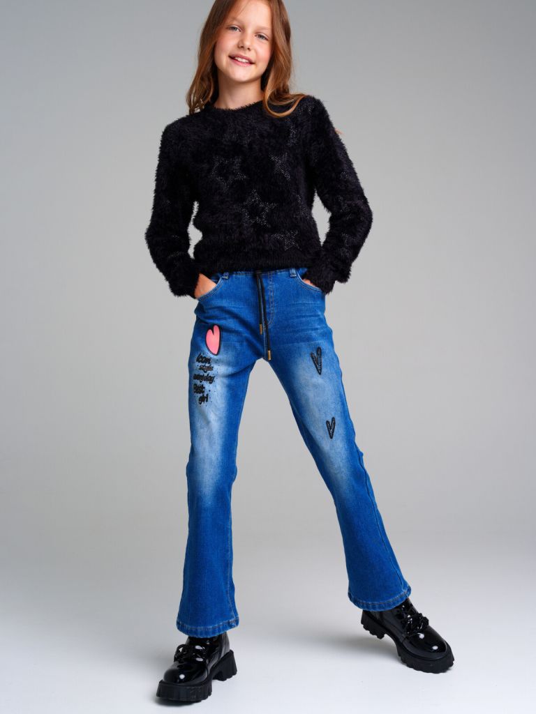 Брюки текстильные джинсовые для девочек