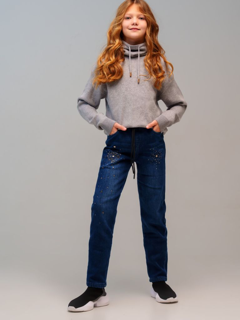 Джинсы с флисом для девочки подростка. Модные утепленные джинсы regular fit (классическая посадка) на резинке со шнурком. Боковые карманы. Модель из капсульной коллекции PREPPY VIBE (ПРЕППИ ВАЙБ). Соберите полный образ в едином стиле!