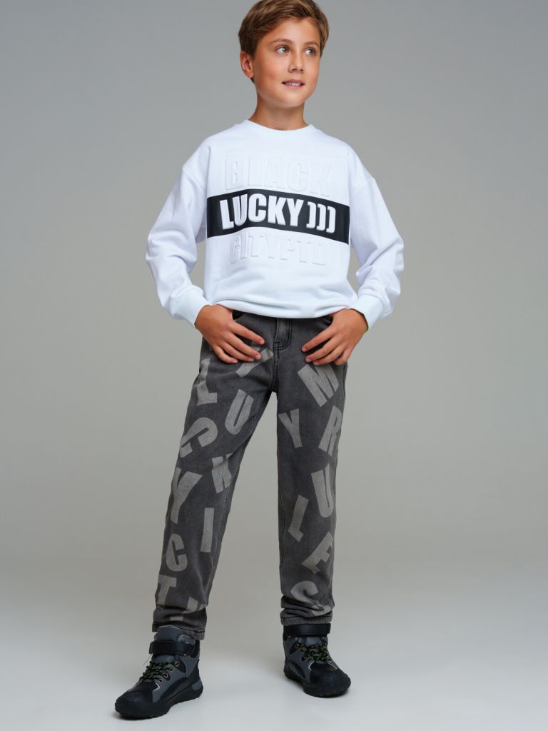 Джинсы с флисом для мальчика подростка. Модные утепленные джинсы comfort fit (свободная посадка) с застежкой на молнию и болт. Внутренняя утяжка. Боковые карманы. Модель из капсульной коллекции B’LUCKY CITY. Соберите полный образ в едином стиле!