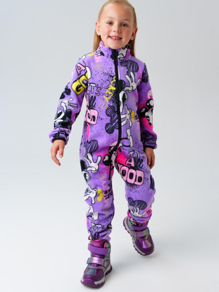 Комбинезон выполнен из мягкого флиса линии EXTRA WARM плотностью 290 г/м² с начесом, который отлично сохраняет тепло и обеспечивает комфорт ребёнку в прохладную погоду. Эластичные резинки на манжетах надёжно фиксируют рукава, не пропуская холодный воздух и ветер.