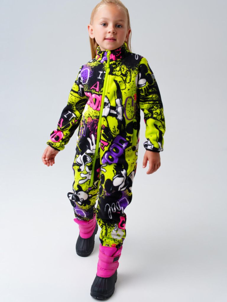 Комбинезон выполнен из мягкого флиса линии EXTRA WARM плотностью 290 г/м² с начесом, который отлично сохраняет тепло и обеспечивает комфорт ребёнку в прохладную погоду. Эластичные резинки на манжетах надёжно фиксируют рукава, не пропуская холодный воздух и ветер.
