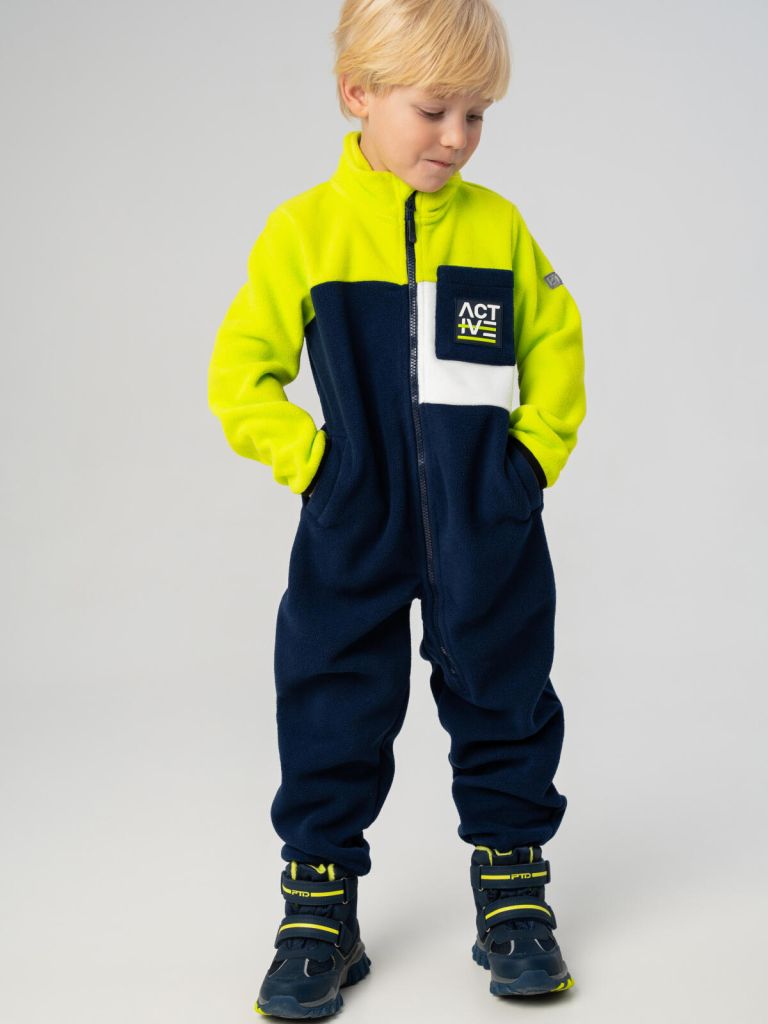 Комбинезон выполнен из мягкого флиса линии EXTRA WARM плотностью 290 г/м² с начесом, который отлично сохраняет тепло и обеспечивает комфорт ребёнку в прохладную погоду. Эластичные резинки на манжетах надёжно фиксируют рукава, не пропуская холодный воздух и ветер.