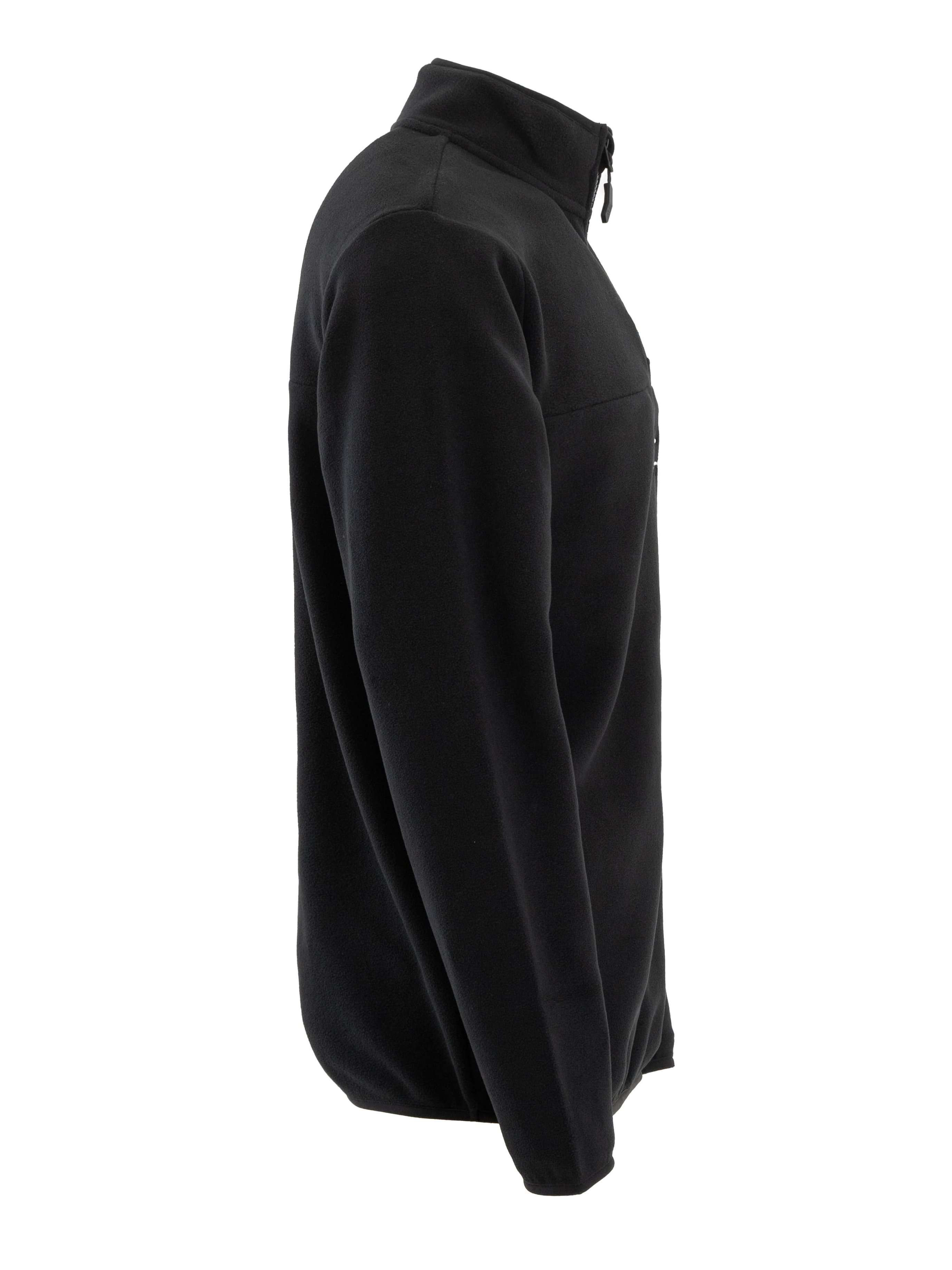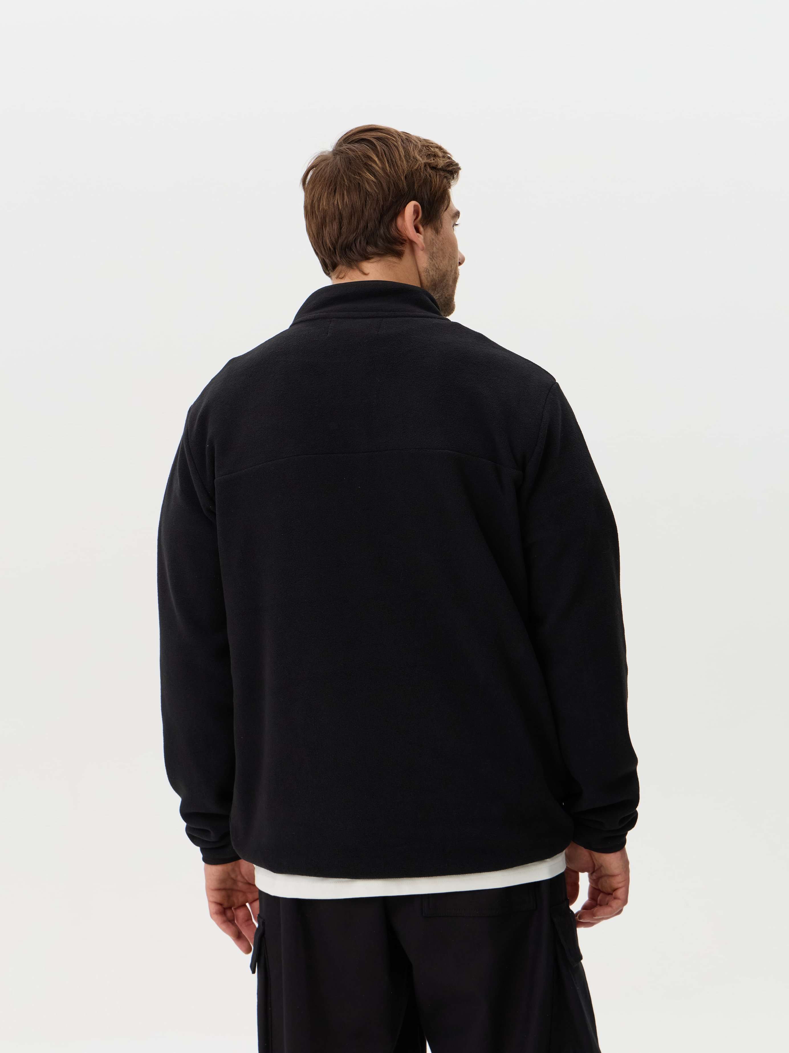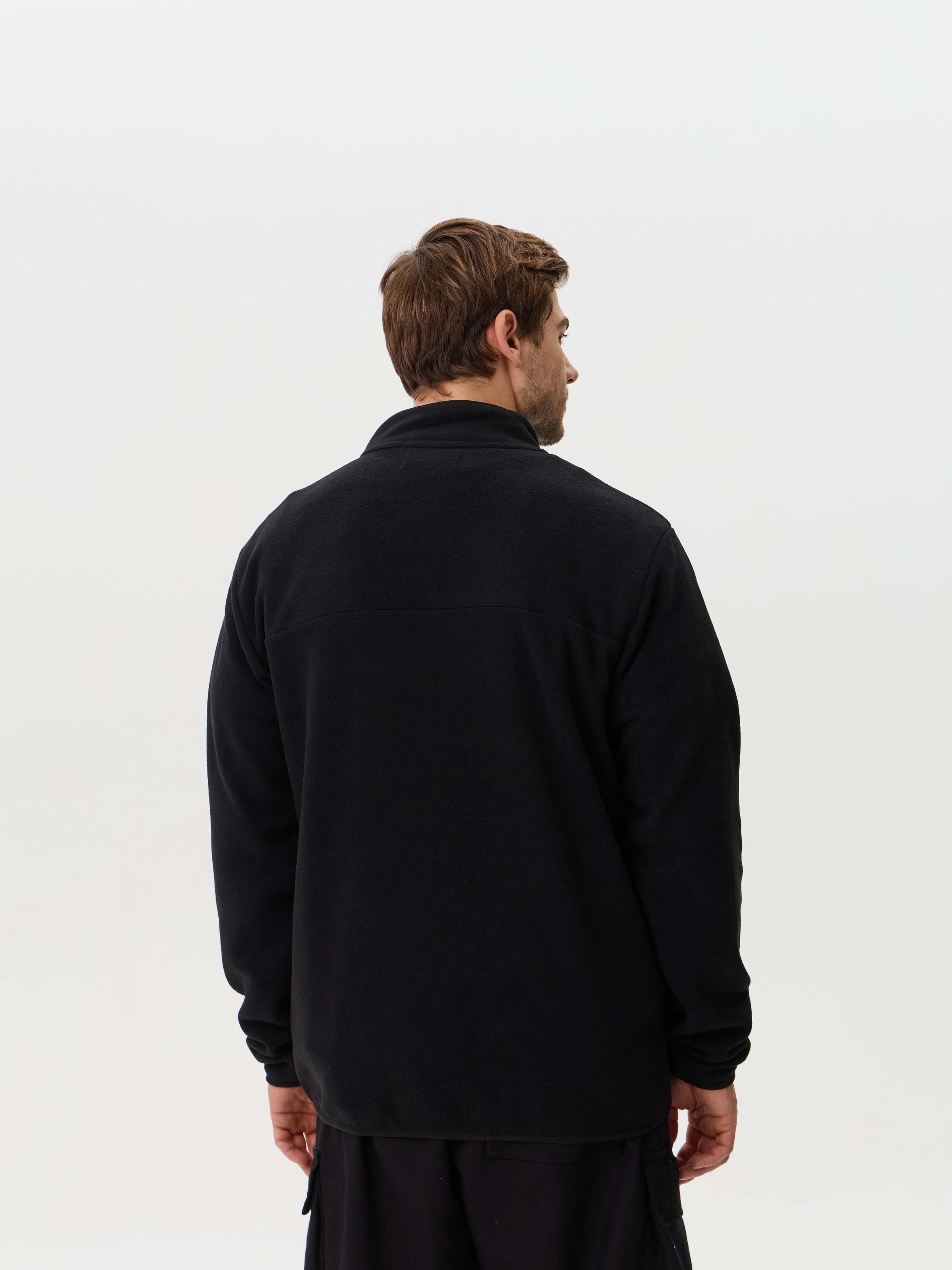 Практичный джемпер с молнией и высоким воротом — это комфортное и стильное решение для города, прогулок и активного отдыха. Классический черный цвет делает эту модель базовой вещью в мужском гардеробе.