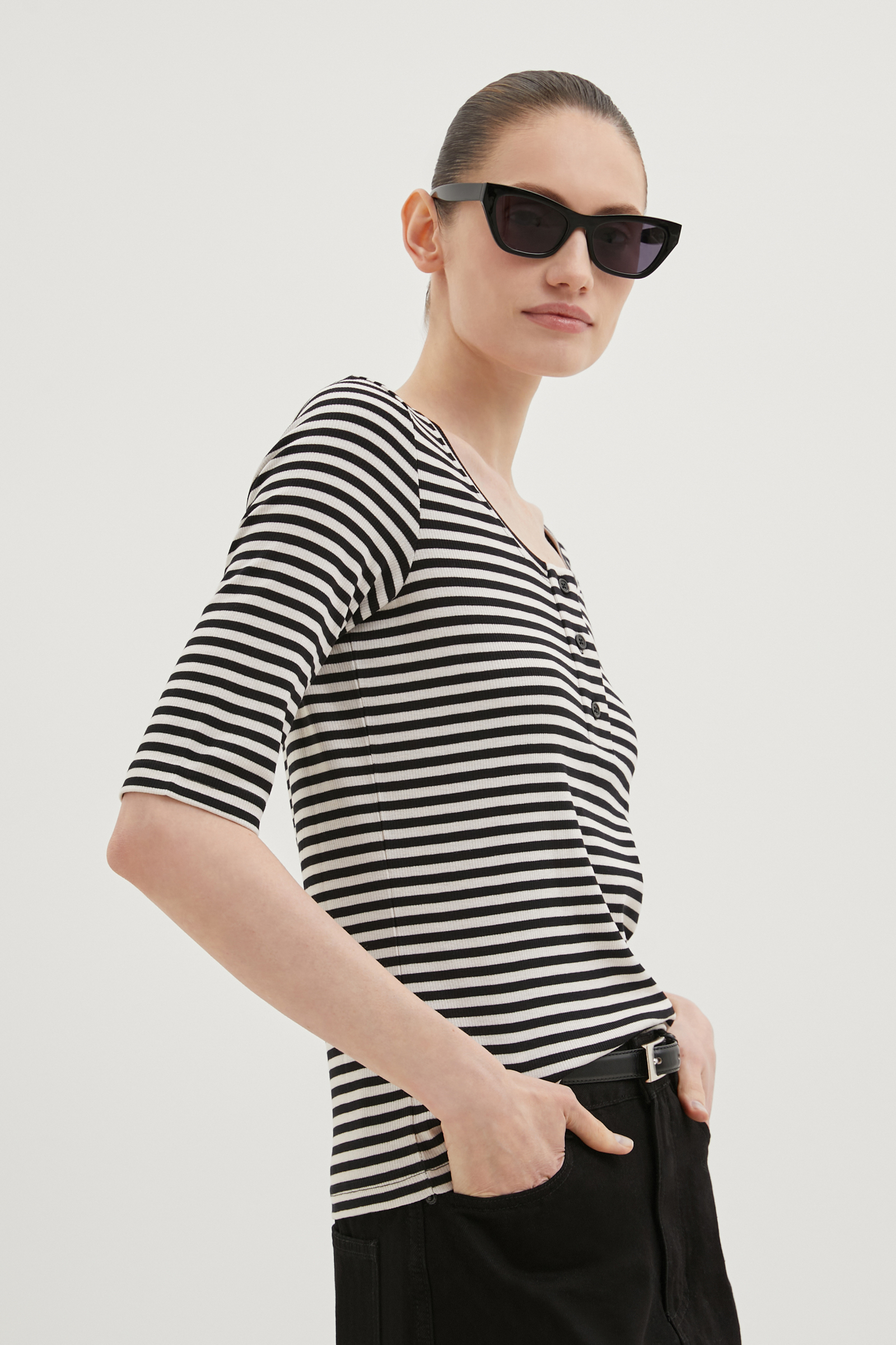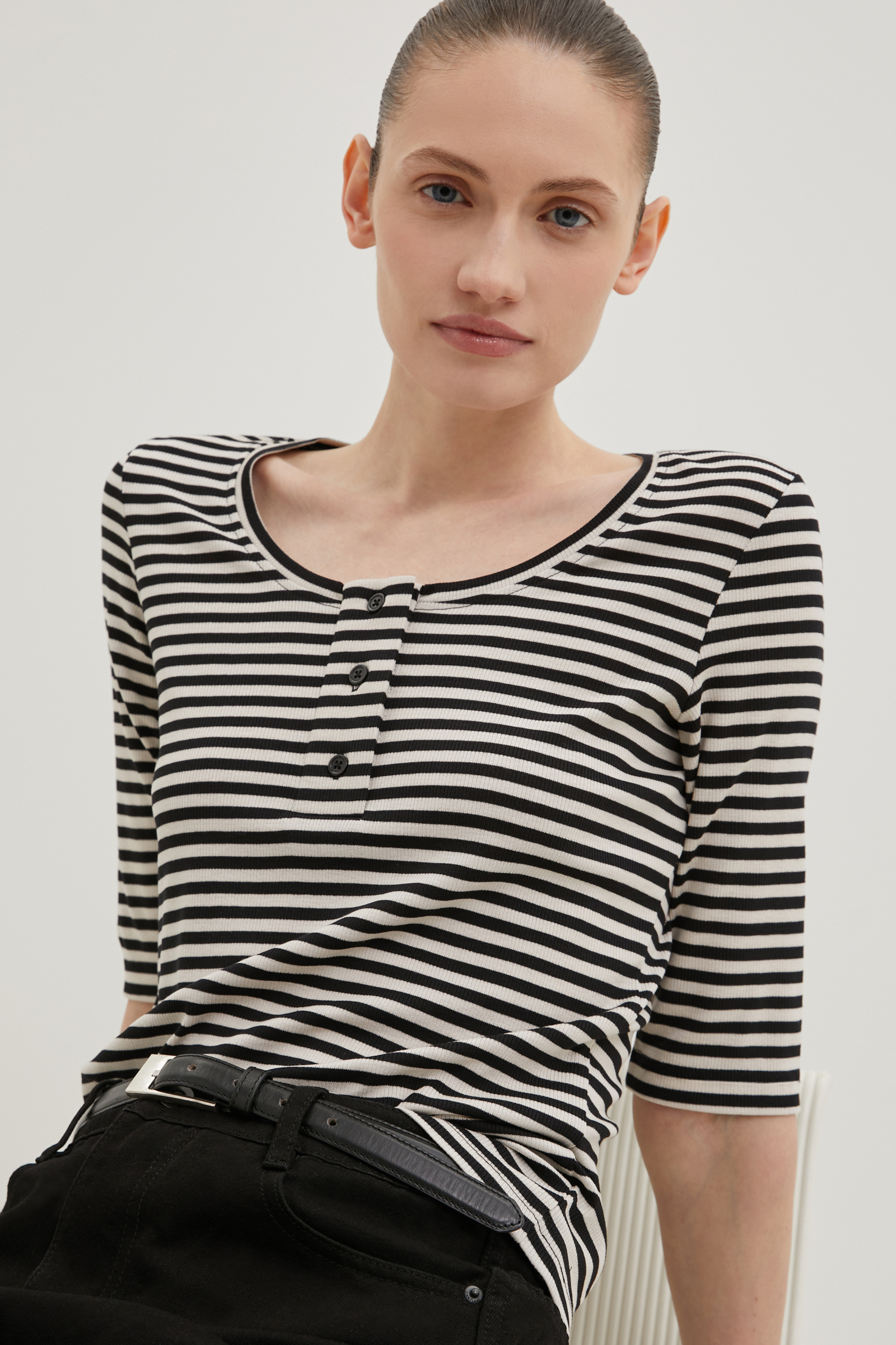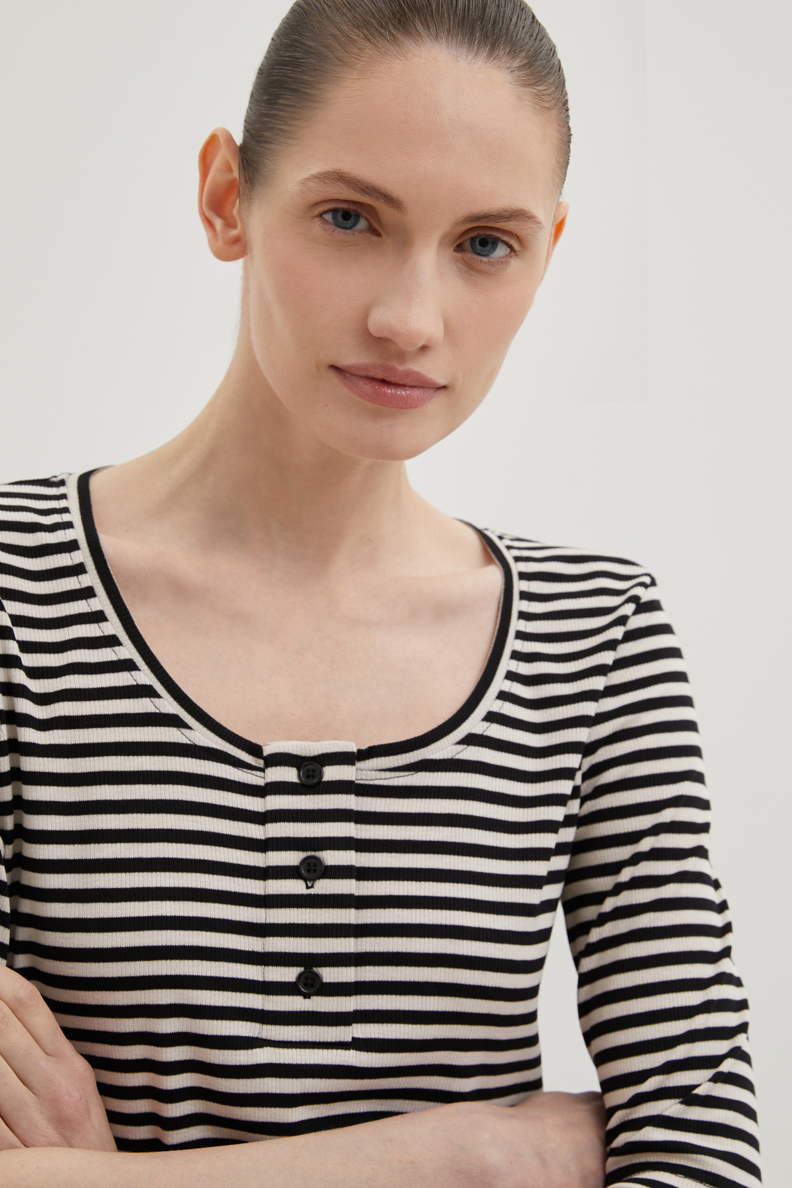 Блузка с округлым вырезом в полоску