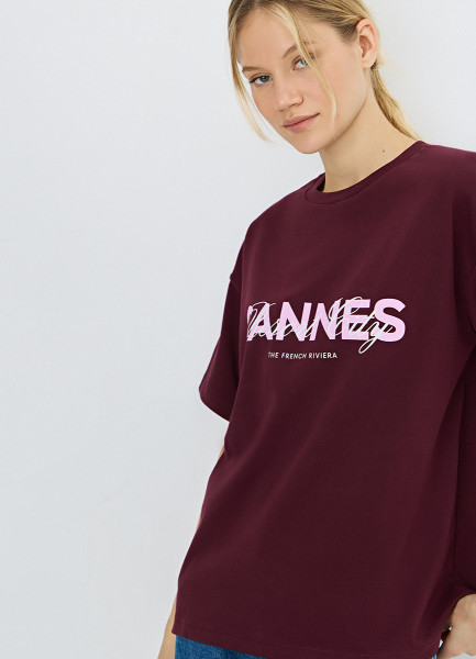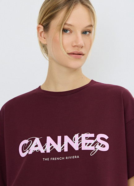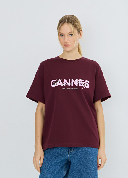 Футболка оверсайз с принтом, Фиолетовый