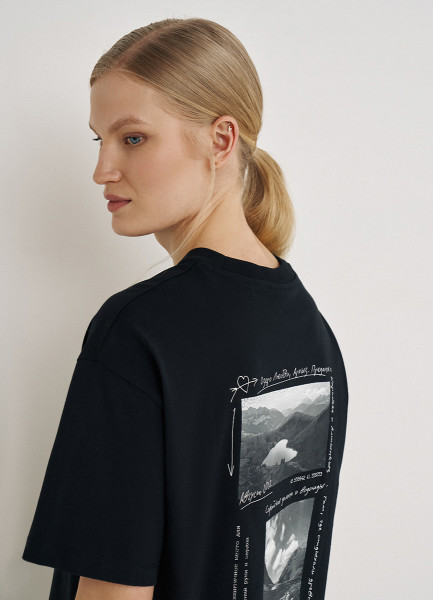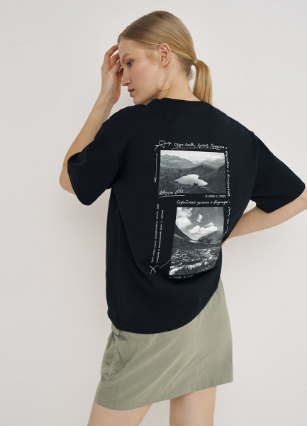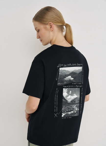 Футболка с географическим принтом O'STIN х Экспедиция, Черный