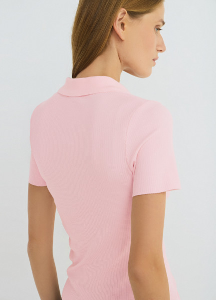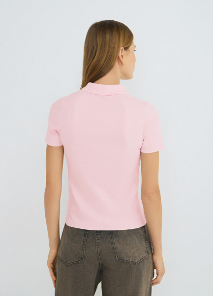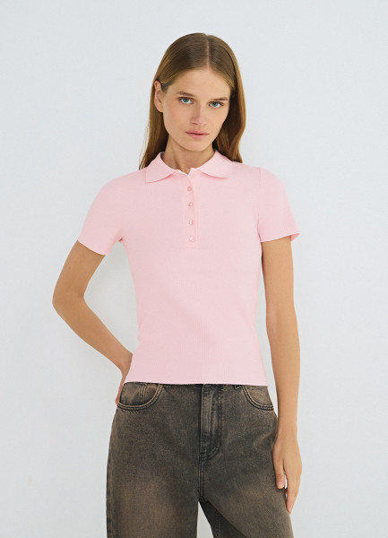 Лонгслив в полоску с воротником поло, Фиолетовый
