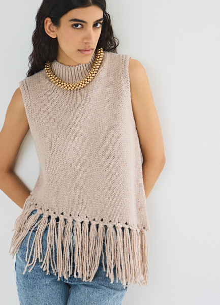Асимметричный вязаный топ с бахромой, Бежевый
