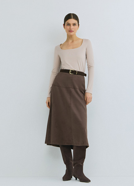 Лонгслив с квадратным вырезом, Коричневый