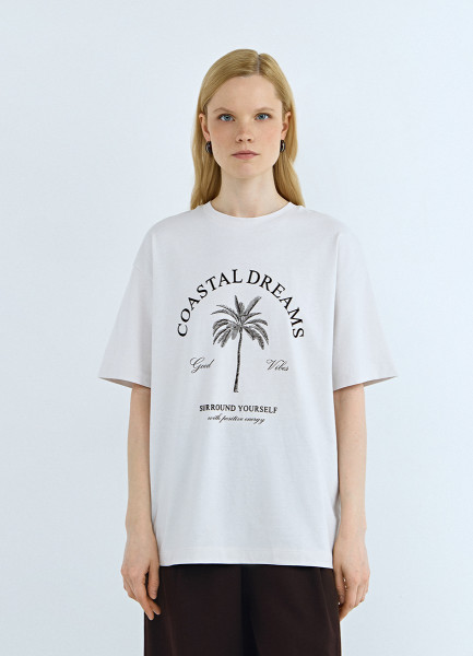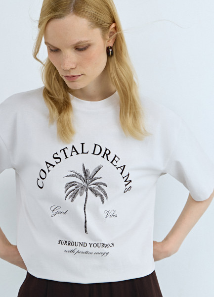 Футболка с цветочным принтом, Белый