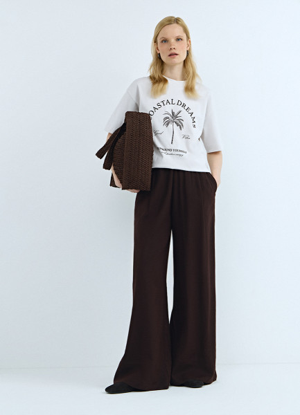 Футболка с цветочным принтом, Коричневый