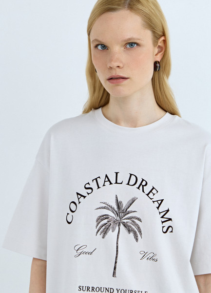 Футболка с цветочным принтом, Бежевый