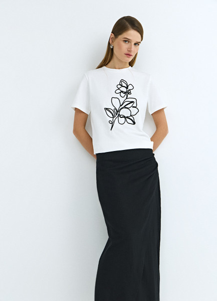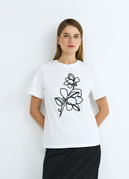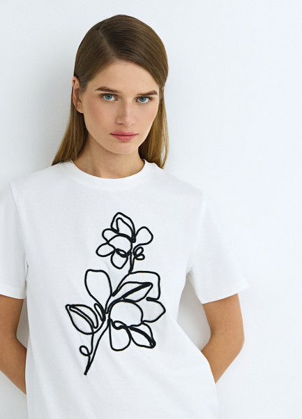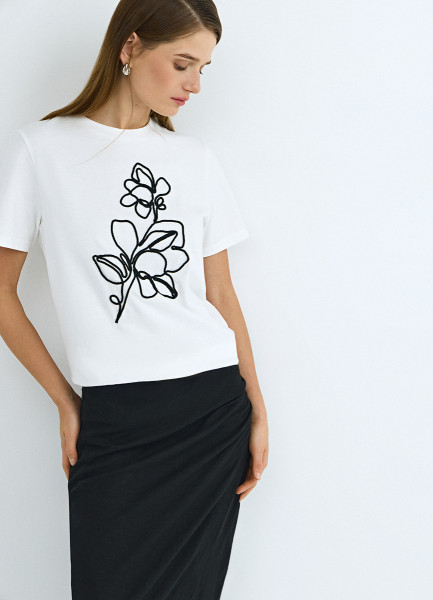 Футболка с цветочным декором, Белый