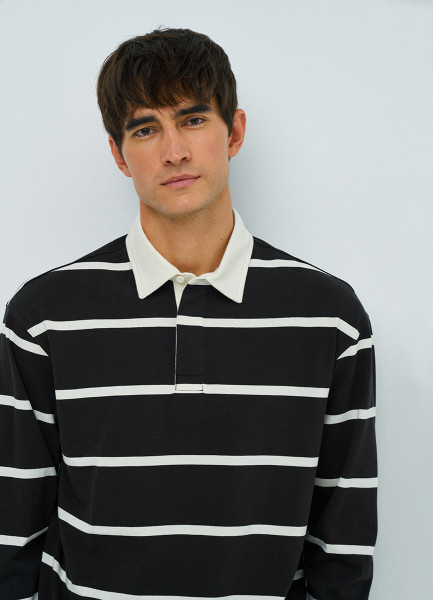 Поло в полоску с длинным рукавом, Коричневый