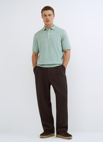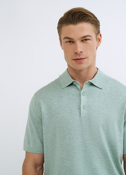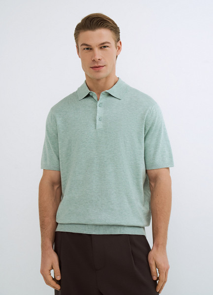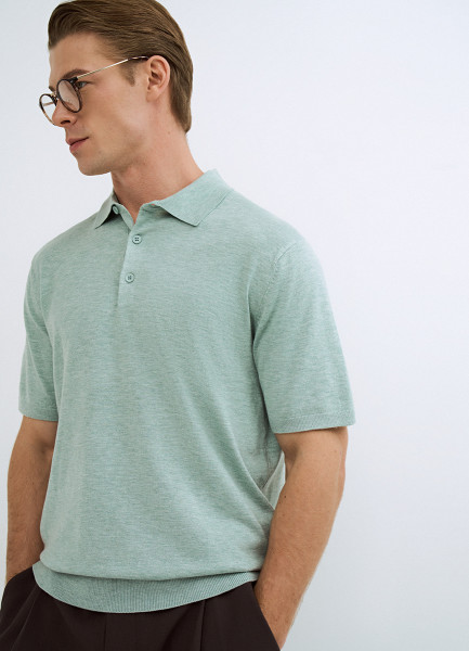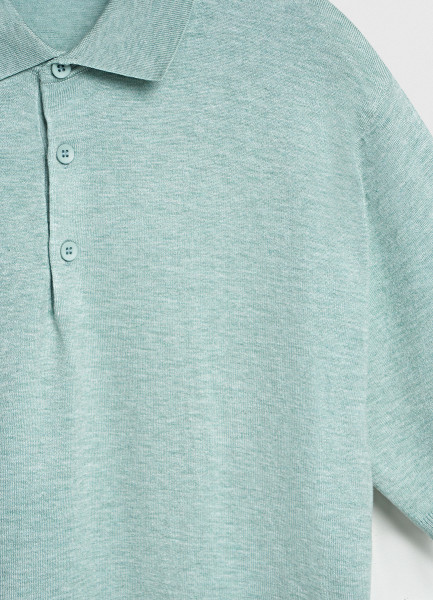 Вязаное поло с коротким рукавом, Зеленый