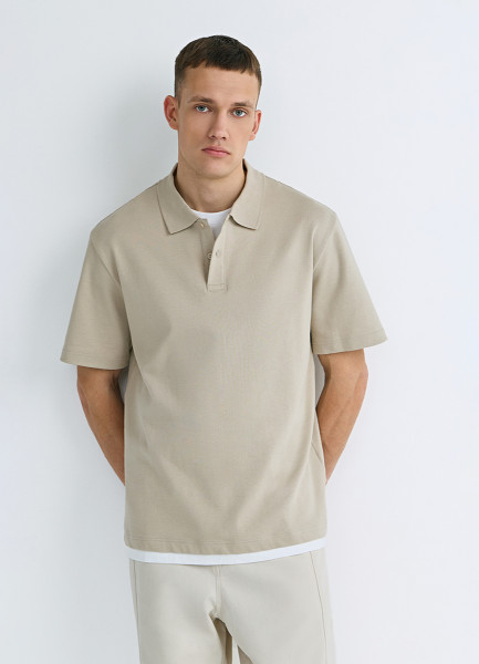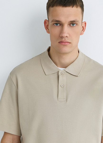 Поло из шелковистого пике, Бежевый