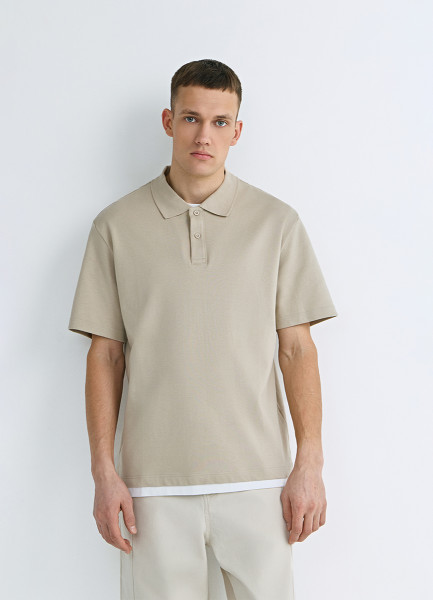 Поло с имитацией второго слоя, Бежевый