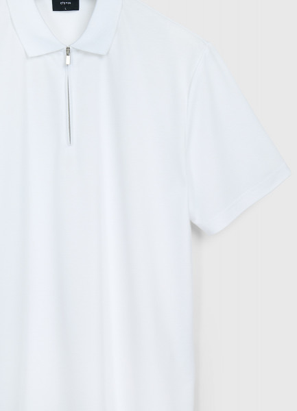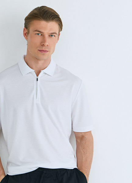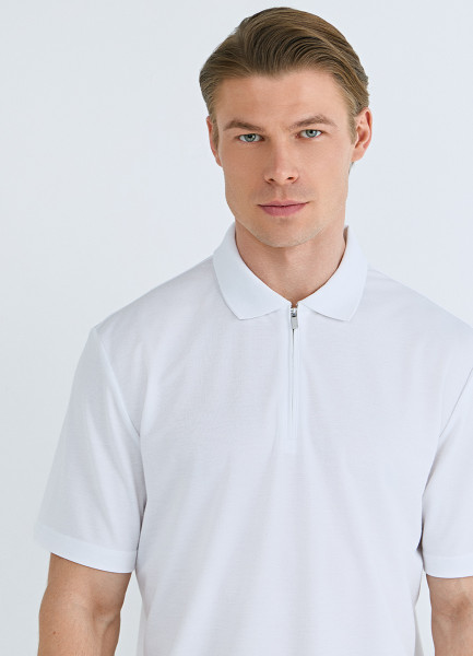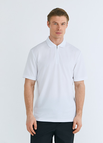 Поло из техноткани с воротником на молнии, Белый